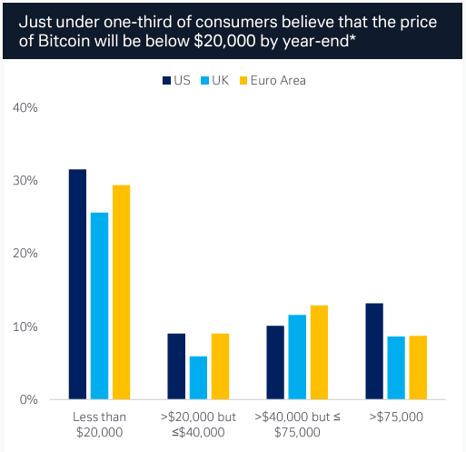 A third of respondents to a Deutsche Bank survey on the cryptocurrency market believe Bitcoin prices will dip below $20,000 by year-end.