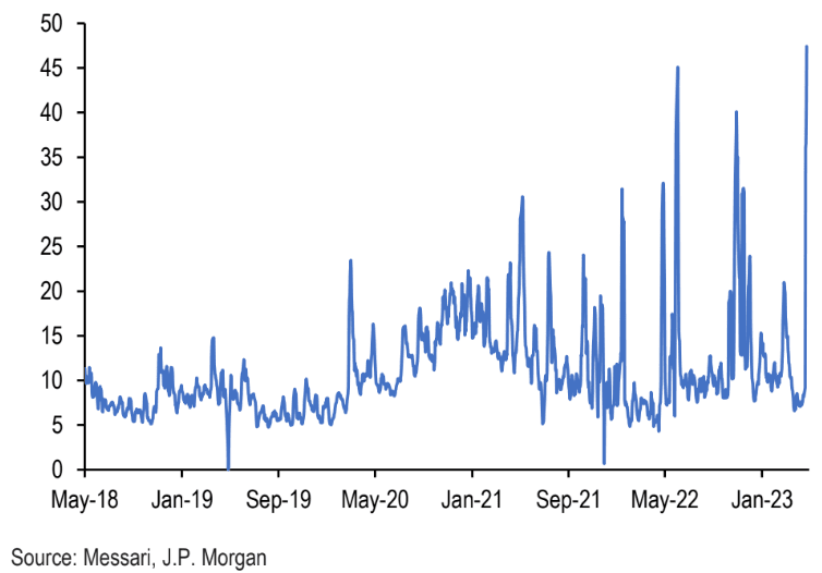 JP Morgan's analysis of on-chain activity (above) showed around 150 thousand BTC leaving Binance wallet address, "this led to more panic in the market and resulted in more withdrawal requests over Binance," says Panigirtzoglou.