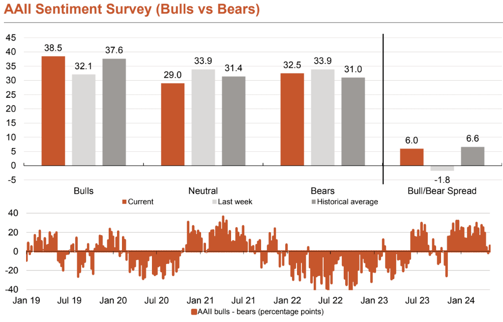 "While the bears were still slightly in the majority last week, the bulls are now back, albeit to a much lesser extent than in recent months. Currently, the bull/bear spread is roughly in line with the historical average," says a note from Berenberg Bank.