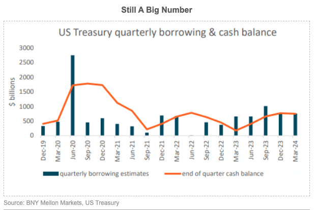 The new borrowing plan sees debt rising by $760 billion in the first quarter versus the earlier forecast of $816 billion.