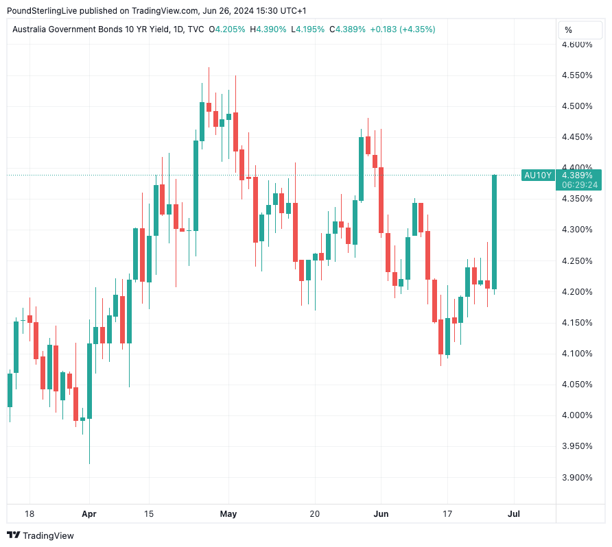 Above: Australian ten-year yields have surged.