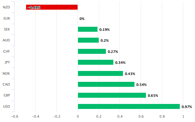 Above: The Euro and Kiwi are the best-performing majors. Source: Pound Sterling Live.