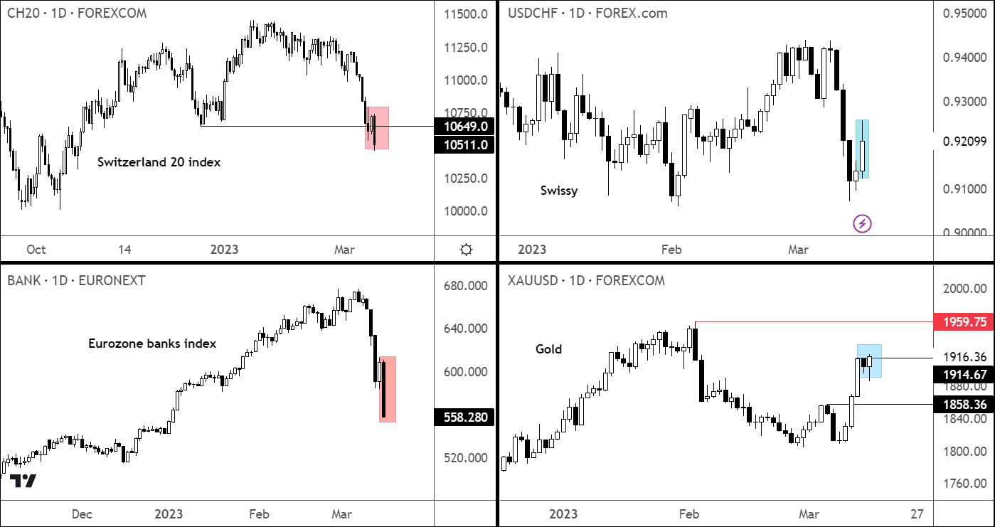 Shares in European banks got an absolute hammering after Credit Suisse plunged more than 20% to a new record low. An index of European bank stocks fell 5%, while the Euro Stoxx 50 volatility hit its highest since October.