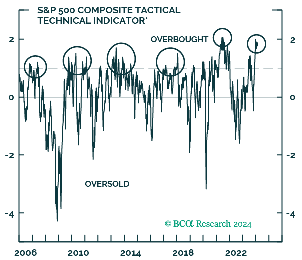 This historical pattern suggests that a significant market correction is not just possible but probable, posing a critical test for the ongoing tech rally. BCA Research analysts further elaborate on the nature of this test, explaining that "a prompt rebound – a mild correction of 10% or less – will likely embolden risk-taking, as investors expect central banks to ease policy in 2024."