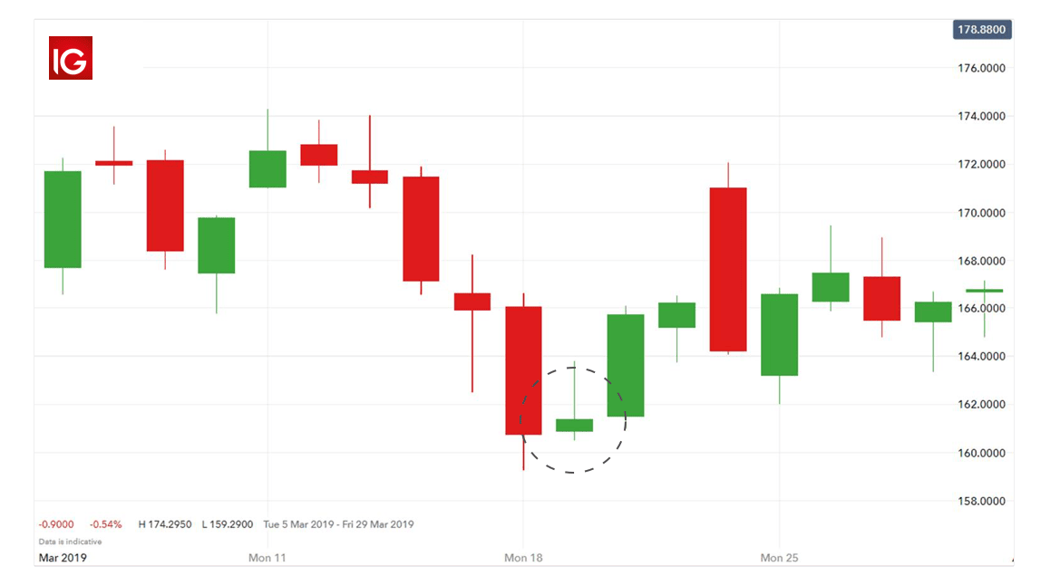 It suggests that though sellers initially dominated, pushing prices skyward, the buyers rallied, signalling a possible shift in the market winds. - Practical Application: Yet, one must tread with caution. The inverted hammer, while promising, needs validation. This usually comes in the form of a subsequent bullish candle, heralding a potential reversal.